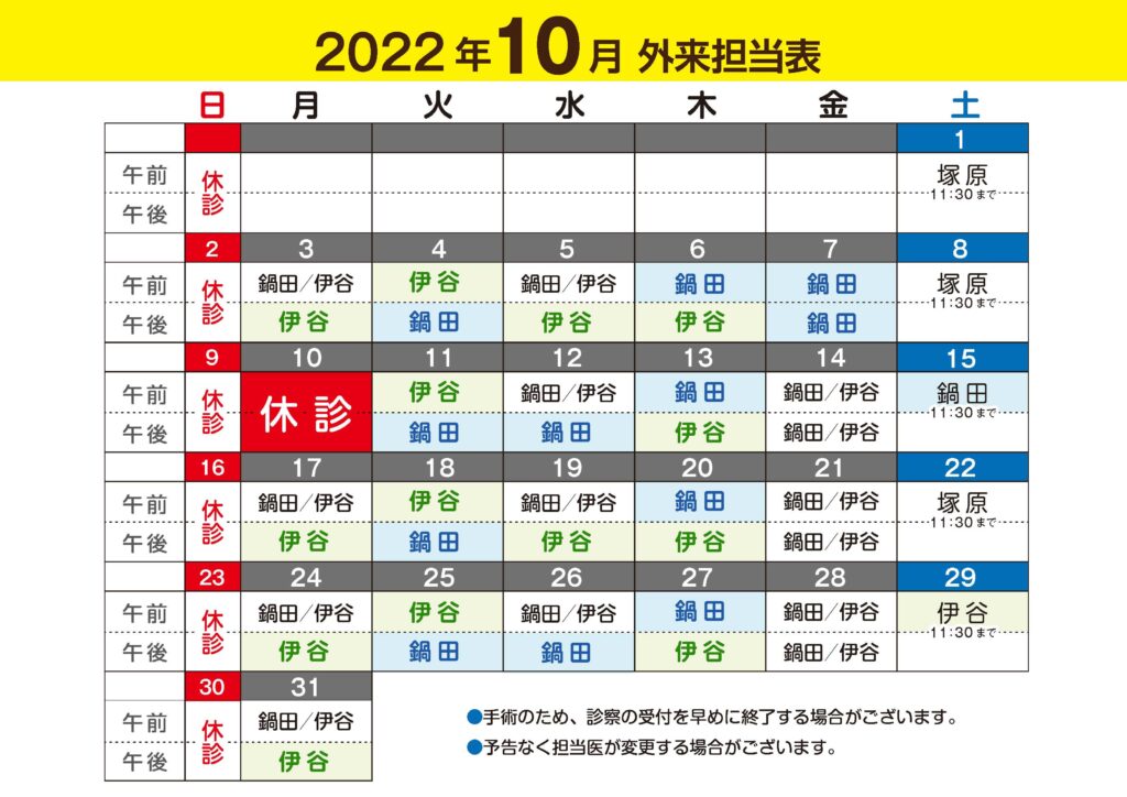 10月・11月の休診日に関するお知らせになります。