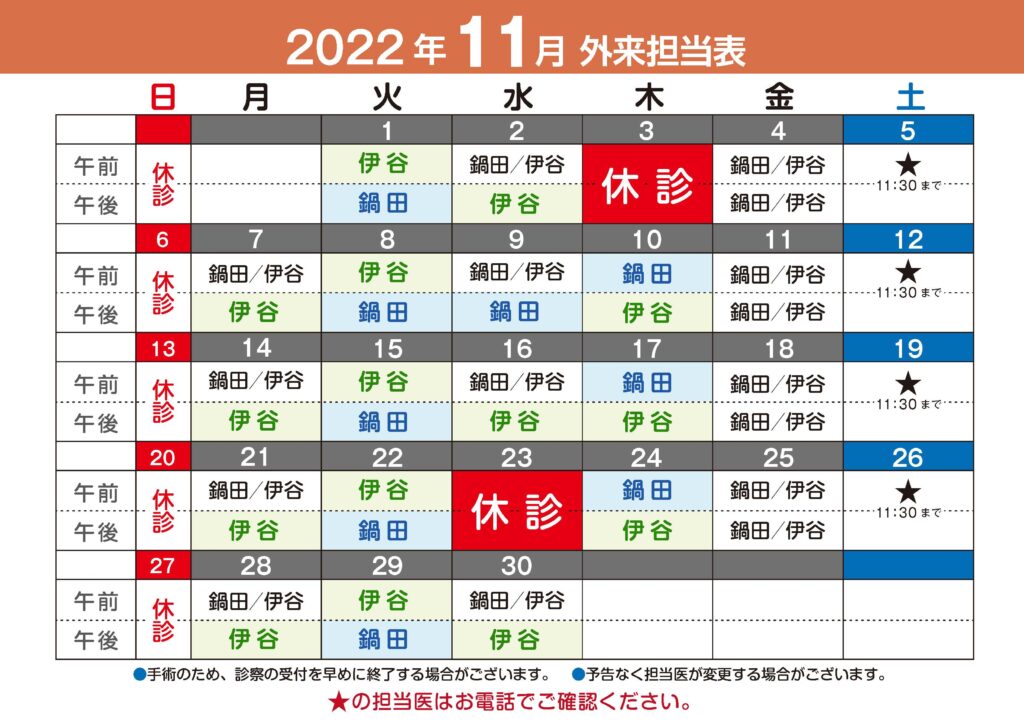 ※手術のため診療受付を早めに終了する場合がございます。