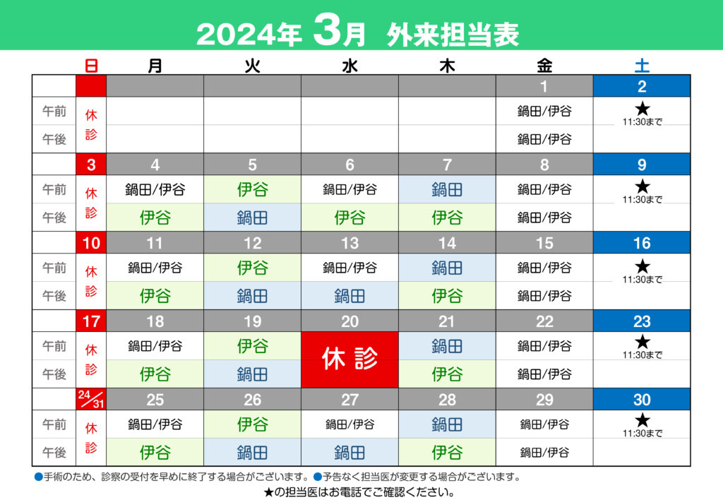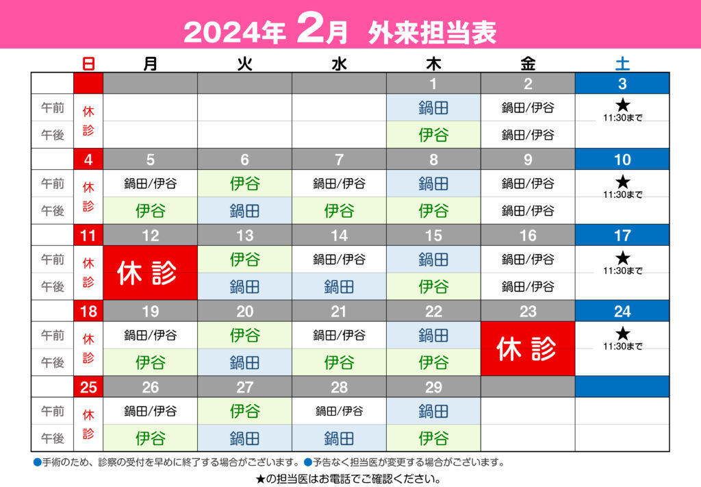 ※手術のため診療受付を早めに終了する場合がございます。
