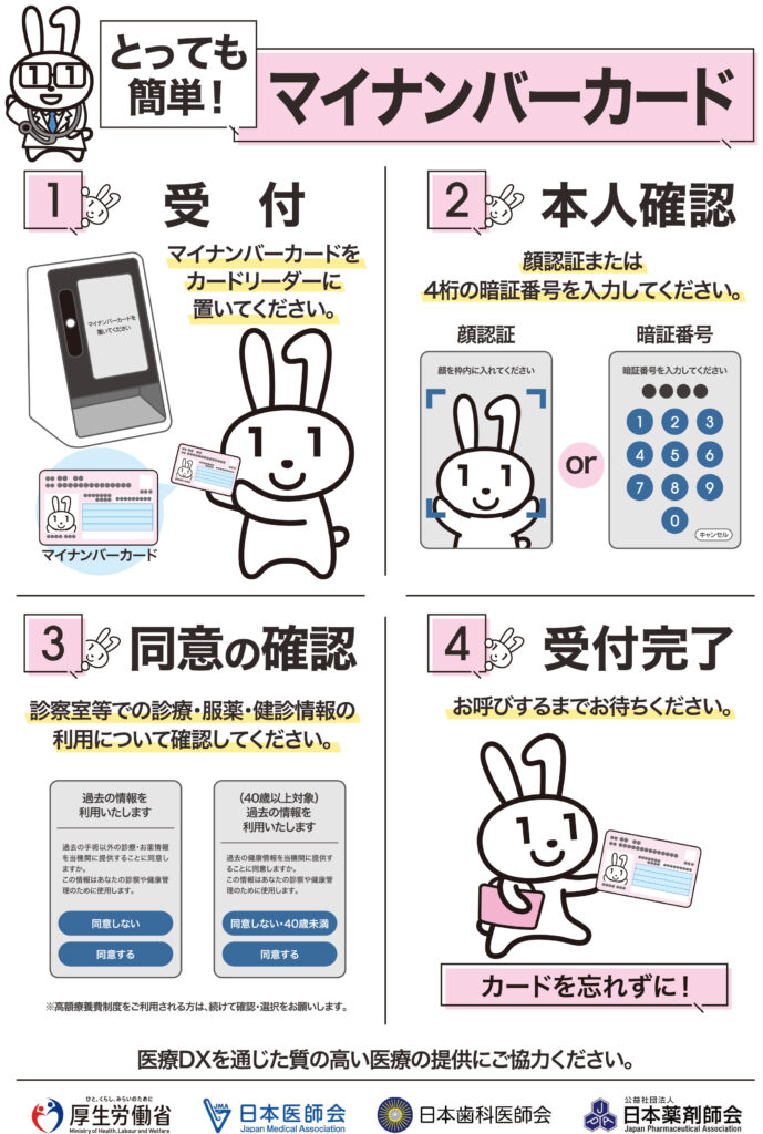 〇当院では、医師が診察を実施する診察室において、オンライン資格確認システムにより取得した診療情報等を活用して診療を実施いたします。