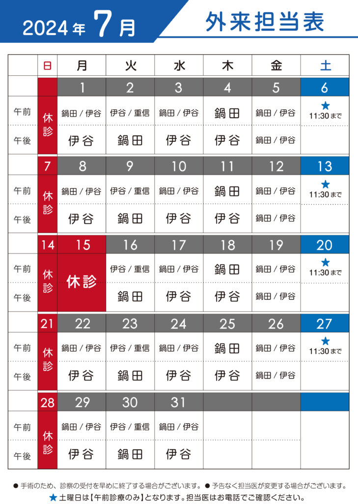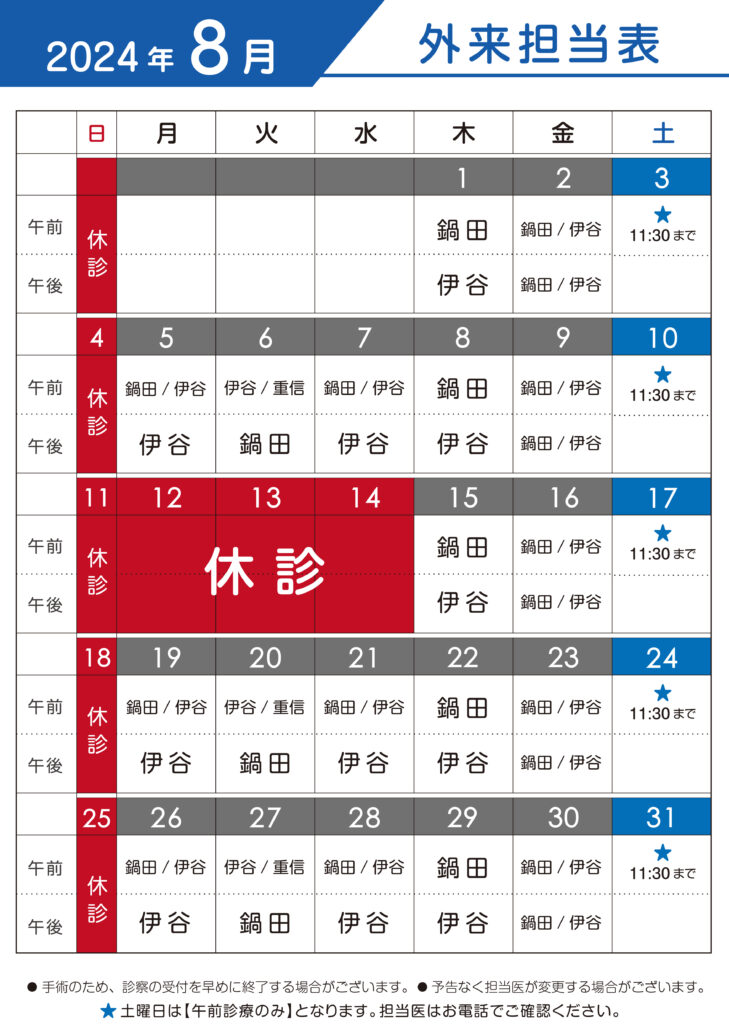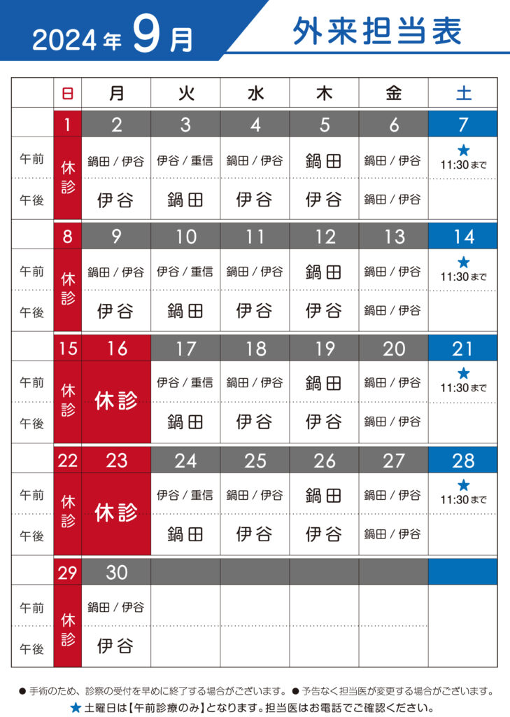 ※手術のため診療受付を早めに終了する場合がございます。