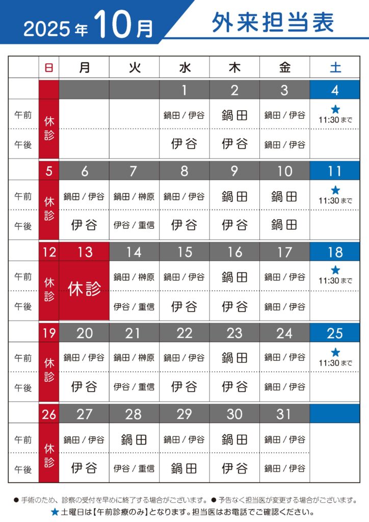 2025年6月・7月・8月・9月・10月の休診日に関するお知らせになります。下記の表からご確認ください。